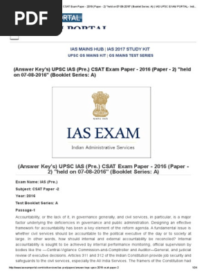 Your comments will help us prepare correct answer keys for the upsc exams. Read the following two passages and answer the items that follow each passage. 3 is definitely not the purpose so by elimination the answer is a. Download upsc ias pre csat exam paper 2016 paper 2 held on 07 08 2016 exam name.