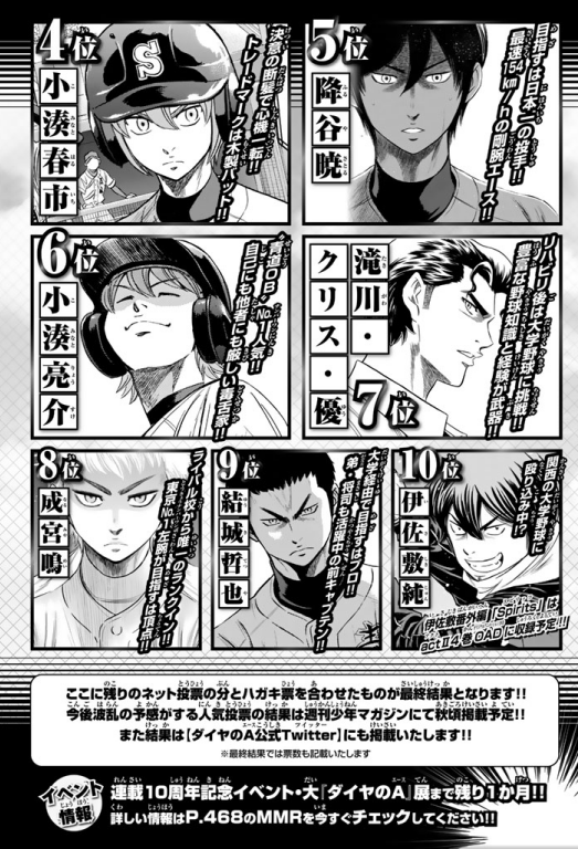 With a stray pitch that completely missed the batter eijun sawamura loses his final middle school baseball game. Daiya no esu also known as diamonds ace is a japanese shonen baseball manga series written and illustrated by yuji terajima and published by kodanshait has been serialized by weekly shonen magazine from 2006 to 2015. Names are arranged alphabetically click on the name to go to the characters page. A hepburn.