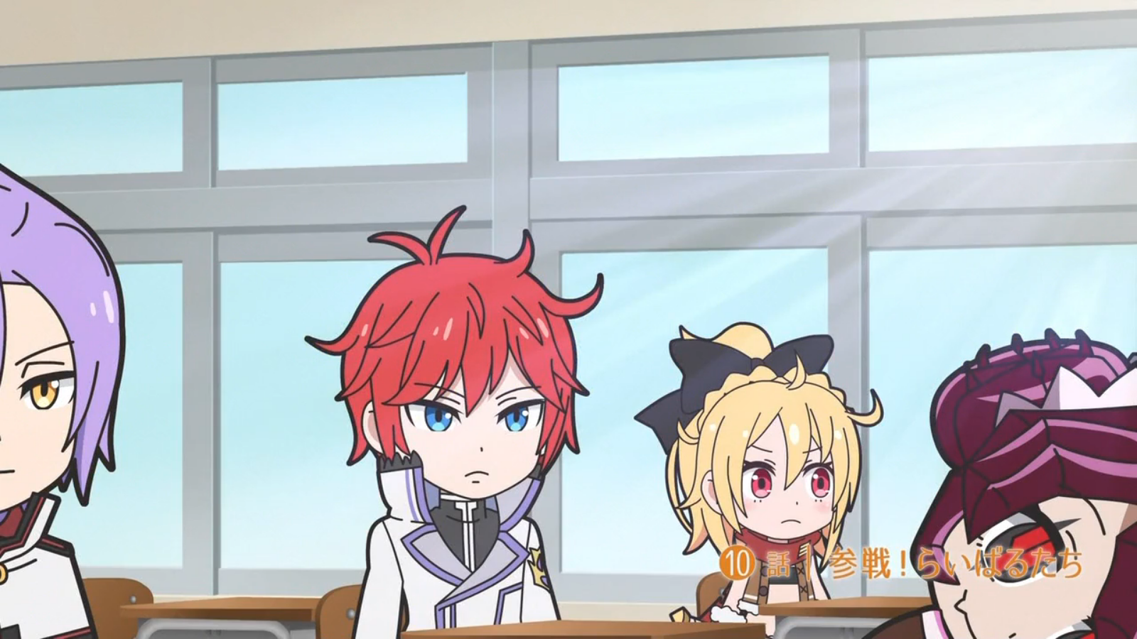 Subaru natsuki is a guy in a tracksuit which is surprising from the rest of his classmates.