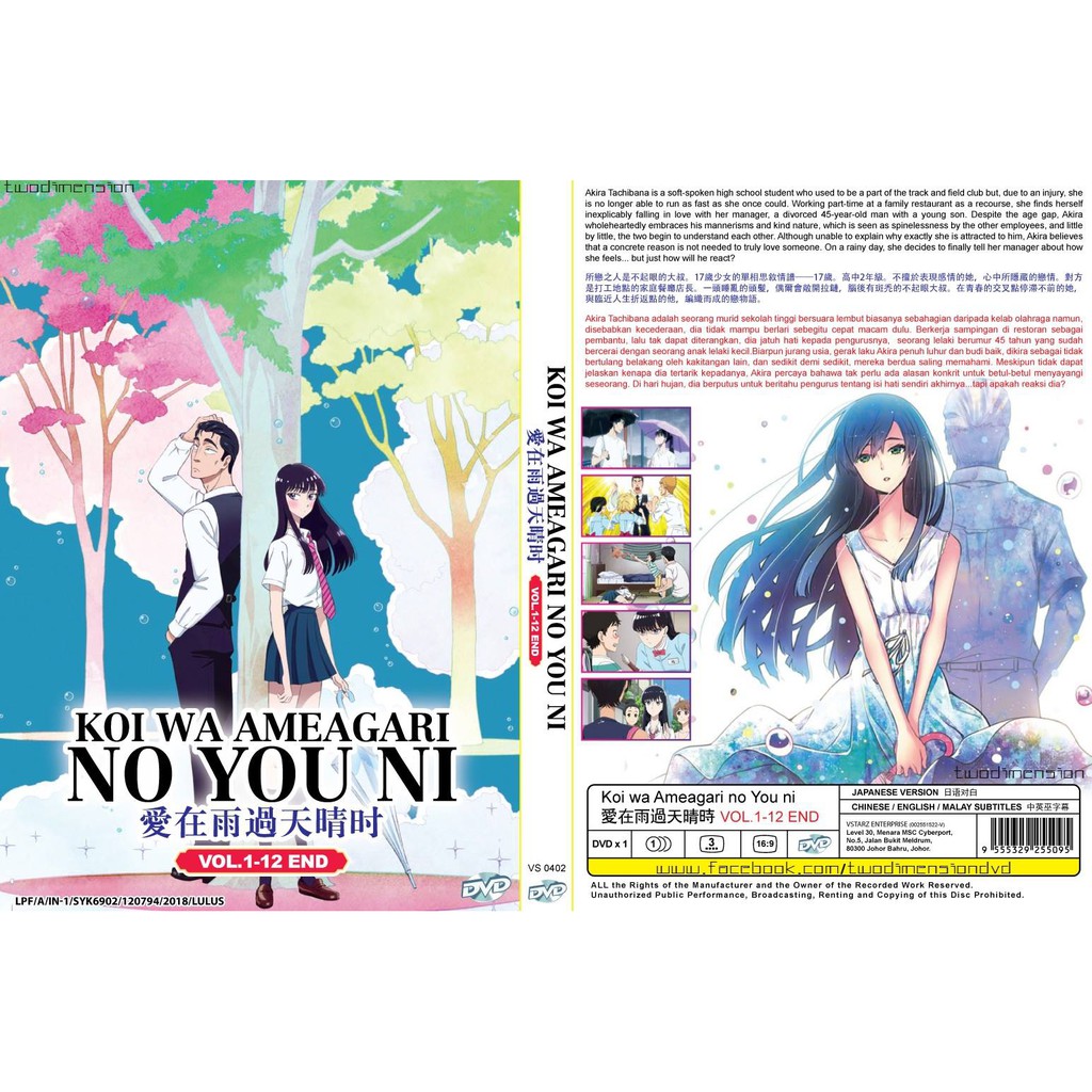 Koi wa ameagari no you ni love is like after the rain cinta itu seperti reda nya hujan anime romance seinen yang memiliki cerita yang bagus dan berkembang sangat nyaman buat di tonton. Love is like after the rain is a japanese manga series written and illustrated by jun mayuzukithe series began serialization in shogakukans monthly big comic spirits magazine in june 2014 before moving to the magazine weekly big comic spirits in january 2016 and finished in march 2018. Lyubov pokhozha na proshedshiy dozhd. Details about dvd anime koi wa ameagari no you ni after the rain series 1 12 english sub.