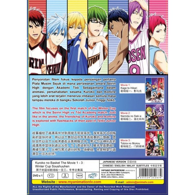 Kuroko no basket movie 1 winter cup kage to hikari. Seirin bersumpah mereka akan membalas dendam dari inter high tetapi bakat aomine tumbuh lebih kuat dan langkah baru kuroko terlihat jelas. Movie 3 winter cup soushuuhen tobira no mukou movie one two and three is a summarize version of season one two and three. Nonton film kuroko no basket movie 1. Movie 1 winter cup soushuuhen kage to hikari 2.