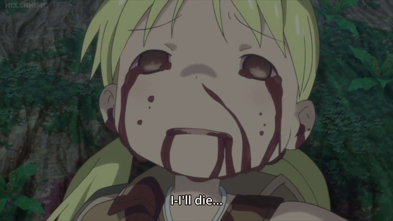 Yeah its that kind of show. We see him break the bone to make the process easier which causes her to cry out in pain. He is named after a dog riko used to have. Despite its kid friendly appearance and art style made in abyss is a very disturbing horror series in the lines of berserk and warhammer 40000 featuring strong gore mutilation and body horror.