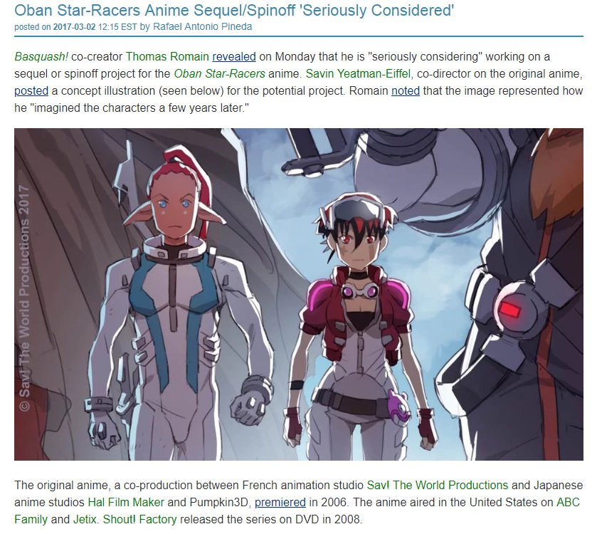 Oban star racers sequel. Shipping fictional characters. Oban star racers creator savin yeatman eiffel announced he was working on a potential sequel and spinoff of the series in collaboration with osr co director thomas romain. The world productions in association with multiple international companies. Any news on the oban sequel so far.