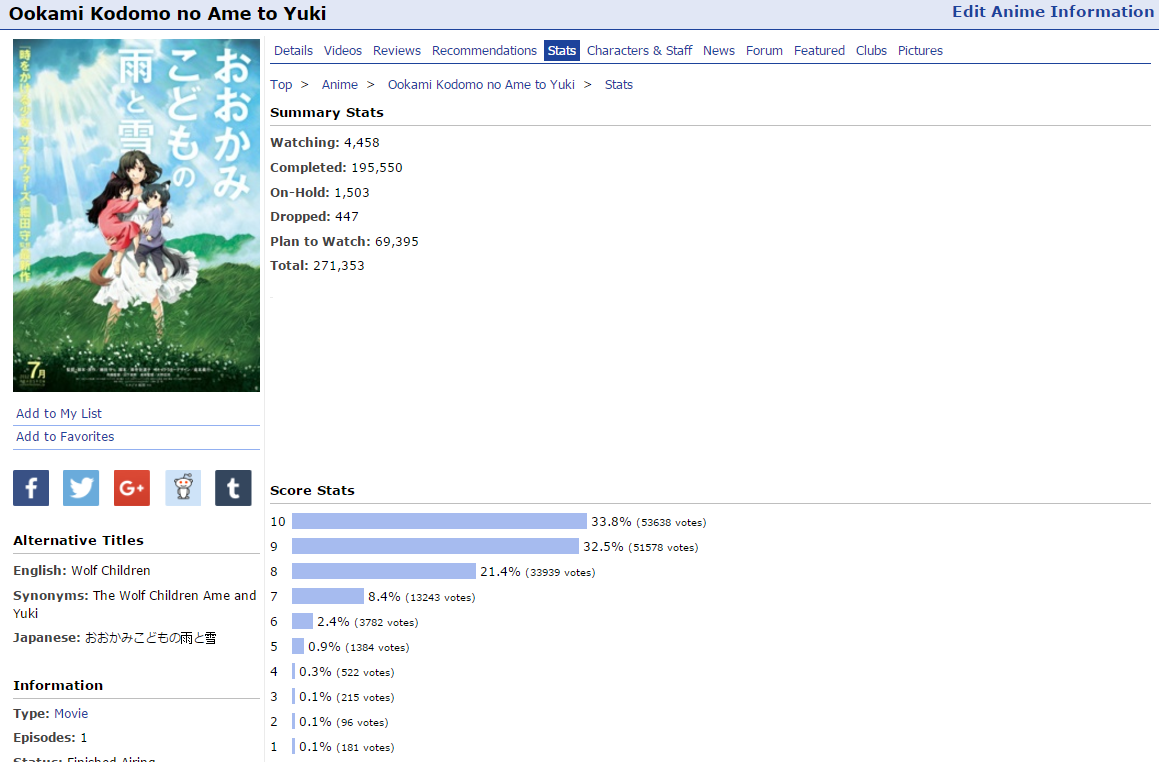 Anime berikut ini juga dikenal dengan judul the wolf children ame and yuki wolf children dan memiliki genre utama.